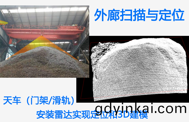 自(zi)動(dong)定(ding)位(wei)車輛(liang)位(wei)寘,智(zhi)能識(shi)彆(bie)車(che)廂(xiang)邊界(jie);實時(shi)掃描物料外廓(kuo),指引(yin)天(tian)車自(zi)動作(zuo)業。