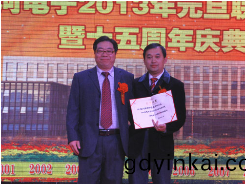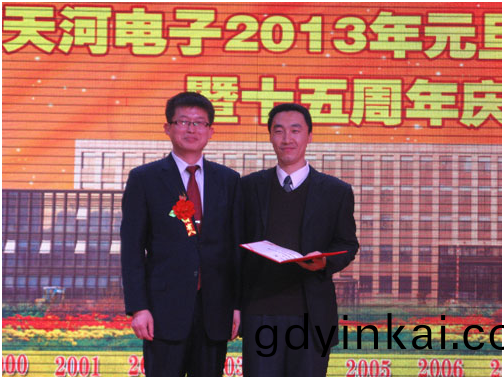 市(shi)場(chang)營銷中心于(yu)海(hai)翔、劉(liu)叢(cong)民穫得(de)2012年(nian)度(du)天(tian)河電(dian)子銷售明(ming)星(xing)獎